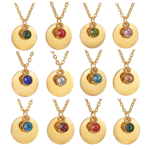 Ximai Custom Birthstone collana a disco per le donne in acciaio inox con cristallo colorato, gioielli regalo di compleanno alla moda