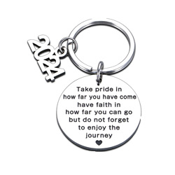 2024 alla moda Unisex portachiavi in acciaio inossidabile vendita calda moda argento finitura scuola chiave per fibbia elegante regalo di laurea